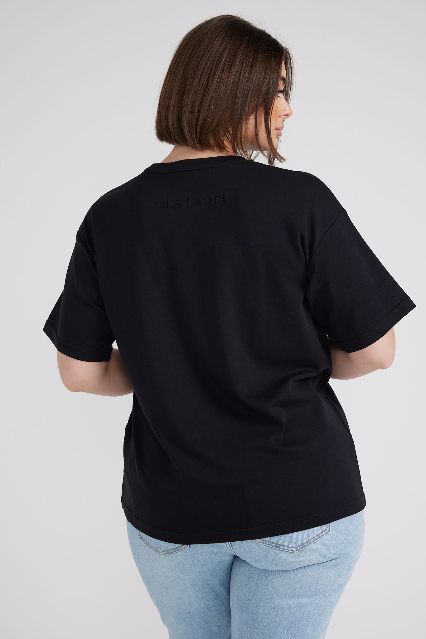 Oversized and adorned with subtle 'JORJA & JOSEPH' embroidery, this tee is a versatile companion for any of our bottoms. Offered in white, black, and cream—it's a genuine wardrobe essential for every style.