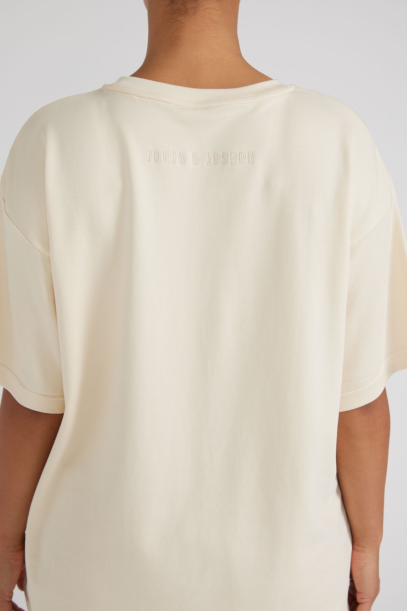 Oversized and adorned with subtle 'JORJA & JOSEPH' embroidery, this tee is a versatile companion for any of our bottoms. Offered in white, black, and cream—it's a genuine wardrobe essential for every style.