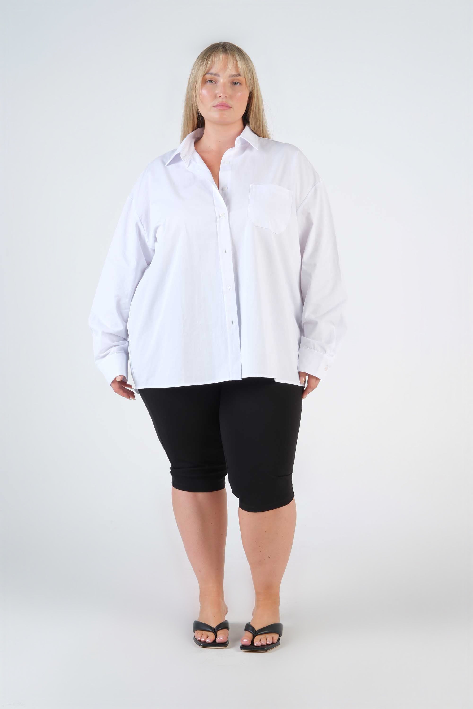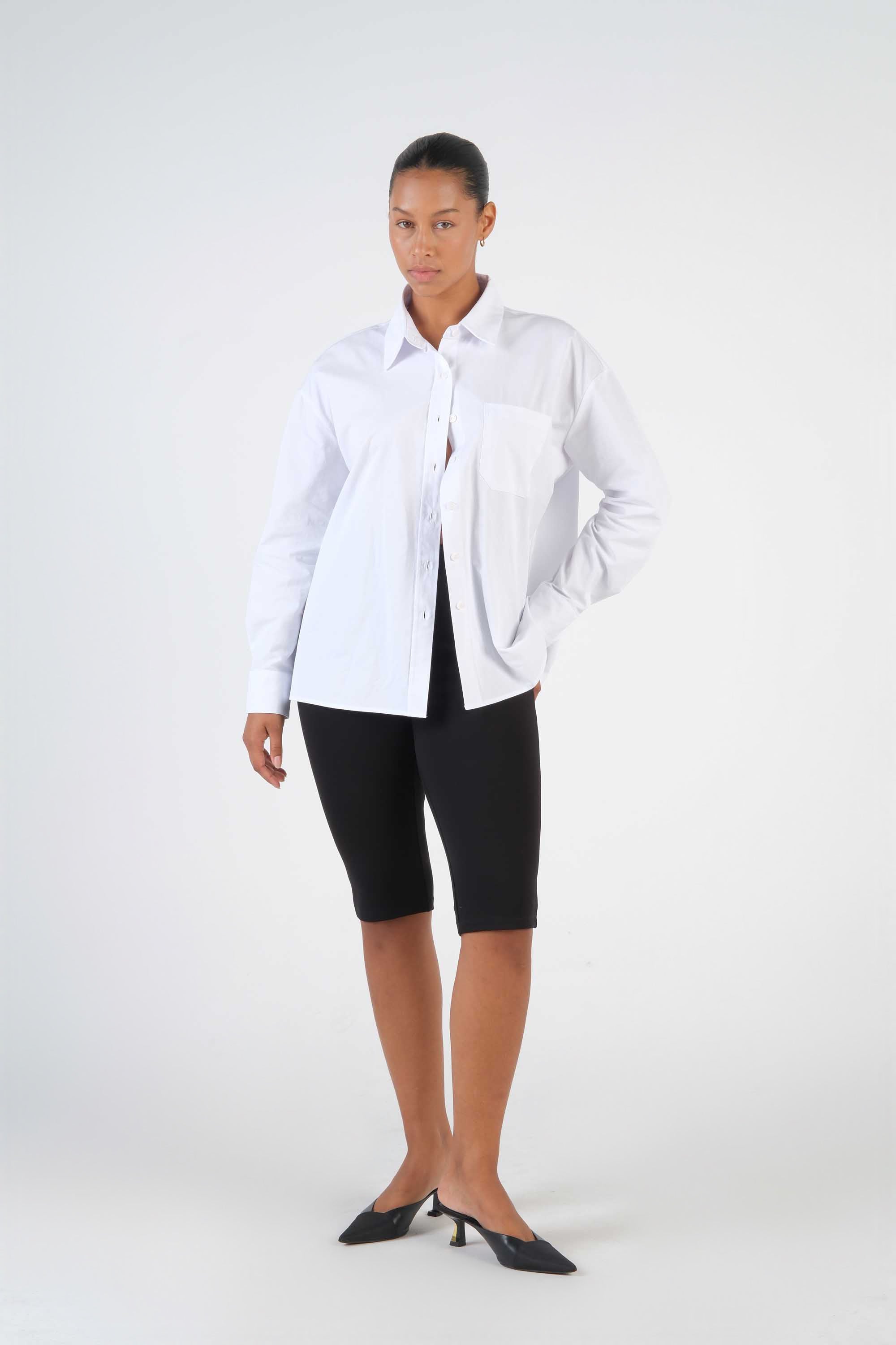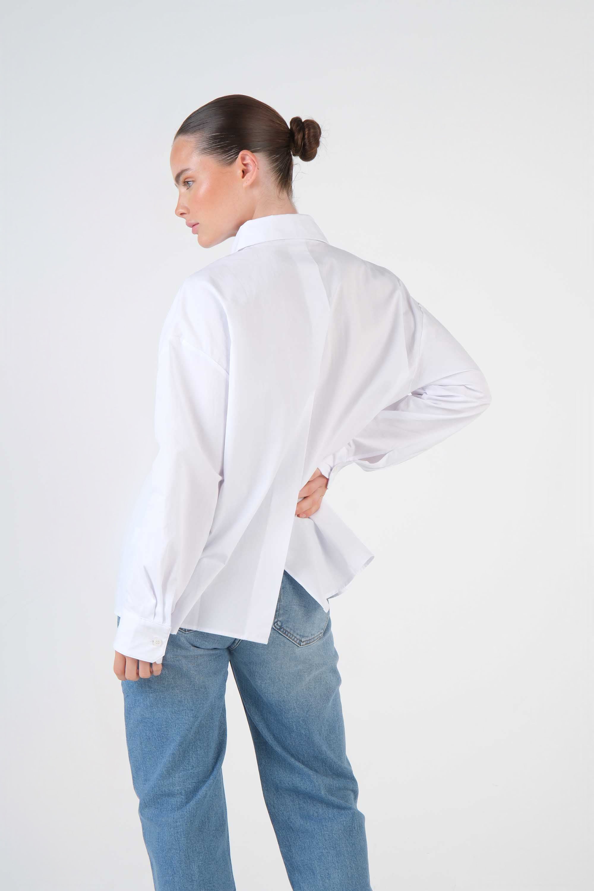This 100% cotton shirt features an oversized cut, a pocket on the chest and a pointed collar; the long sleeves complete the classic tailored look.