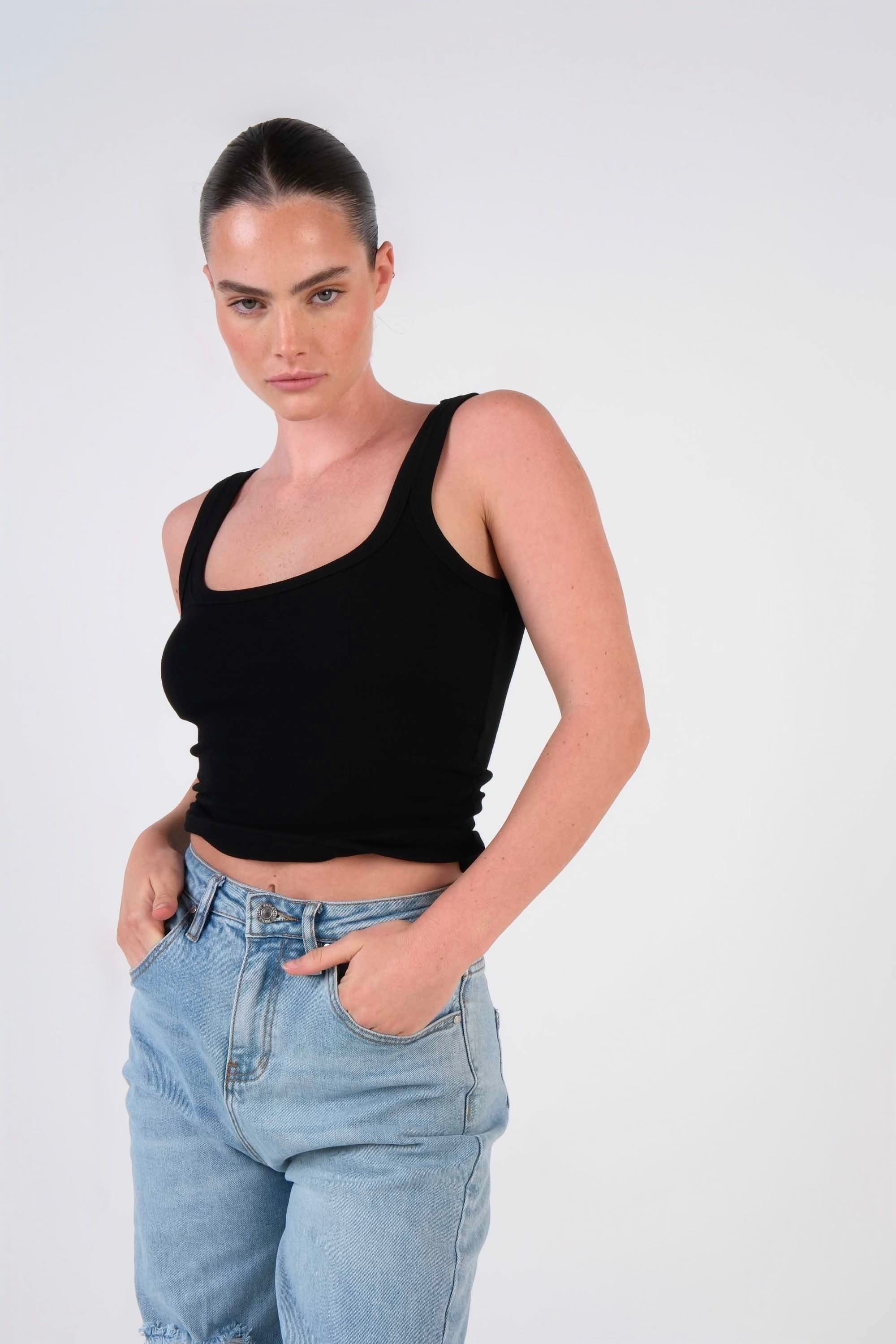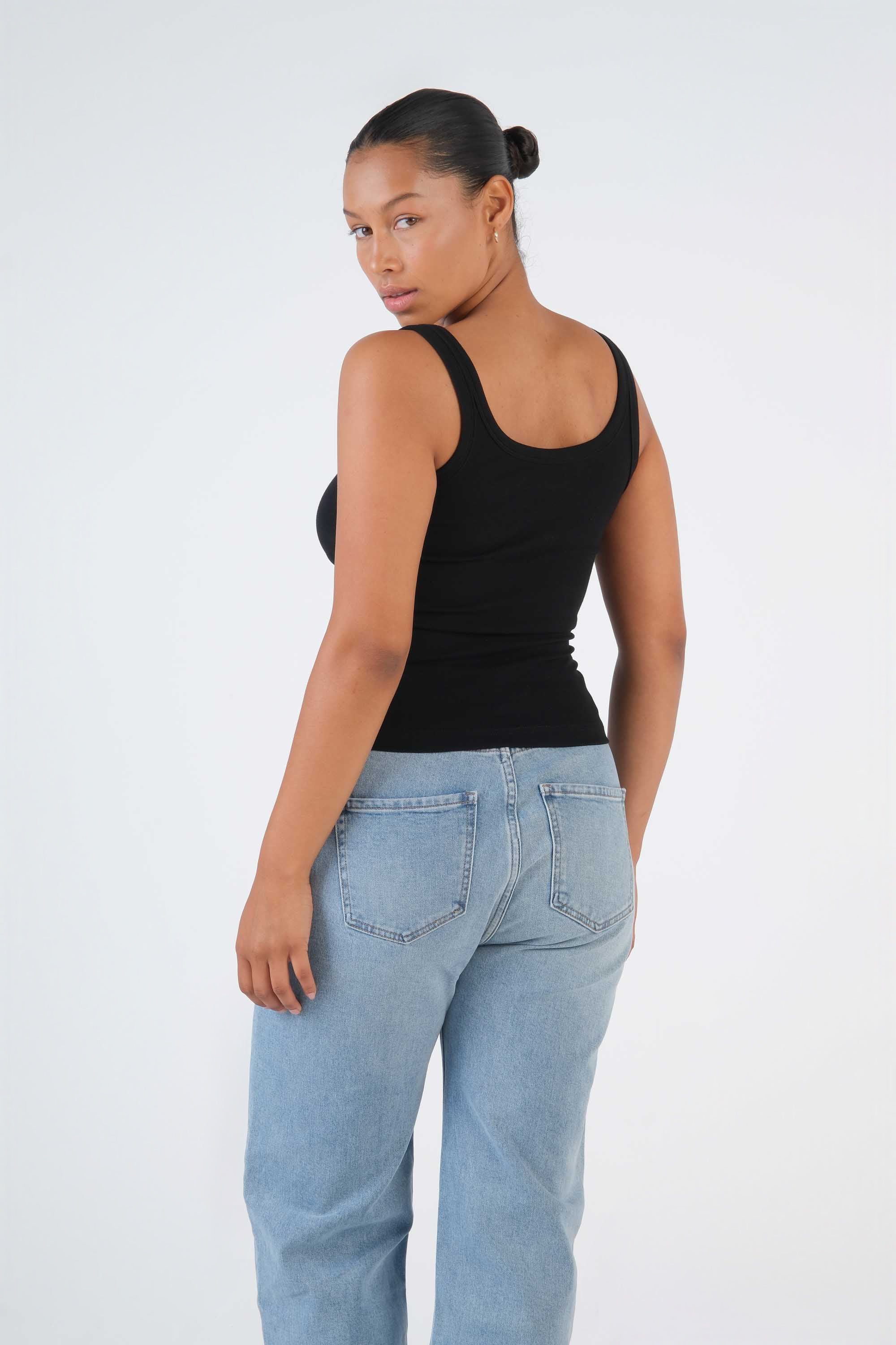 Classic Comfort with a Modern Twist : Our Ribbed Fitted Singlet is a versatile full-length top that adjusts to your style - ruched up for a cropped look or worn long for classic coverage.
