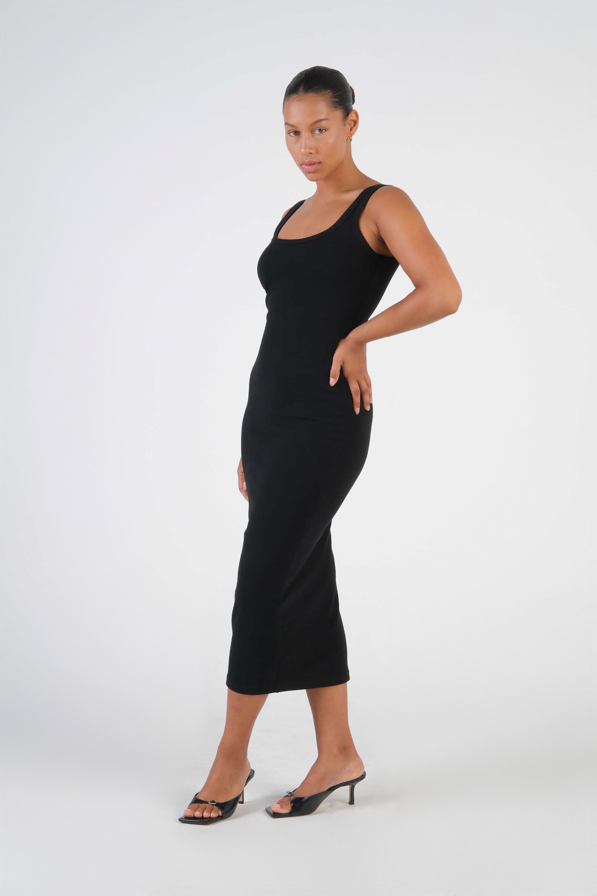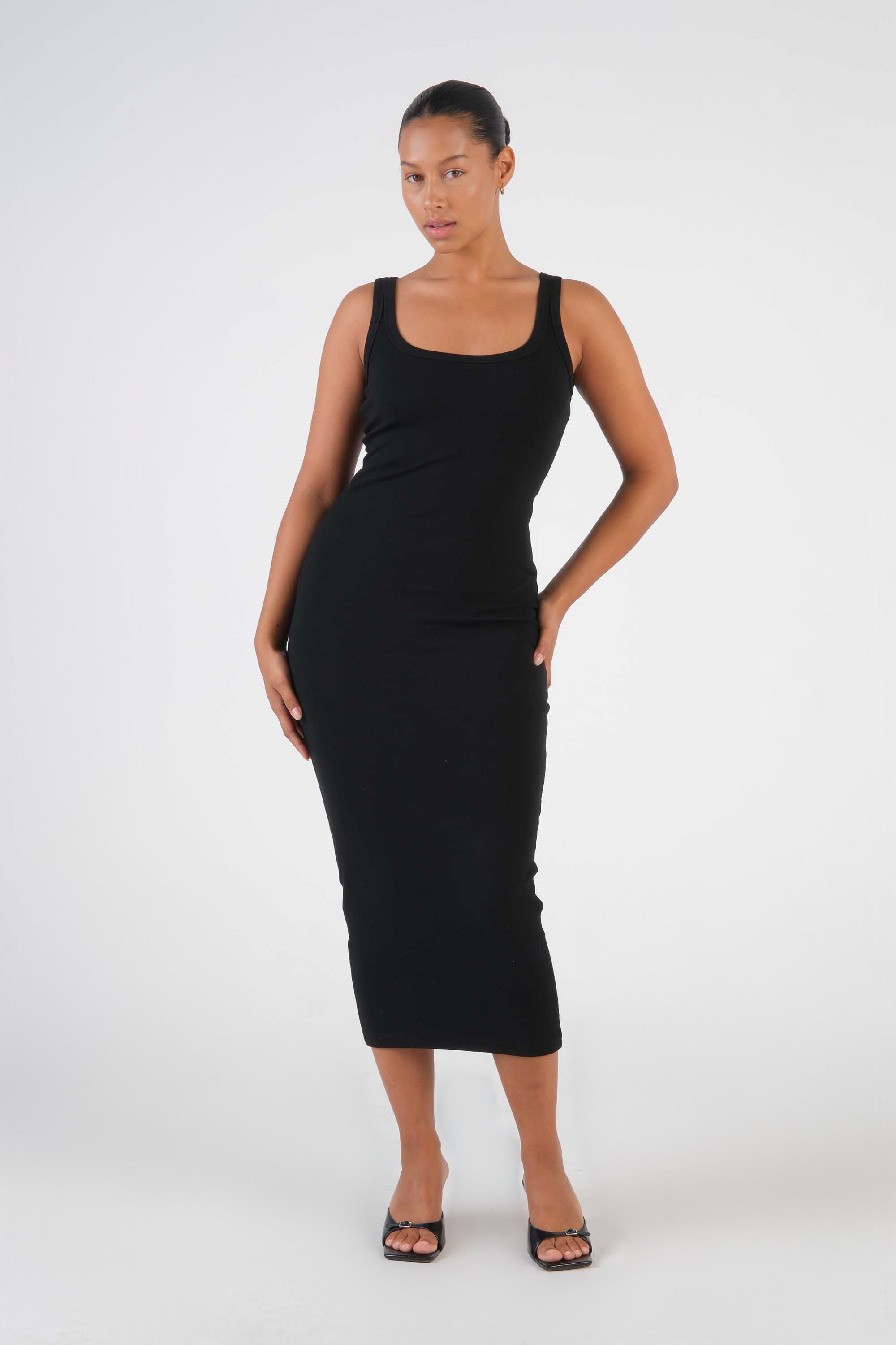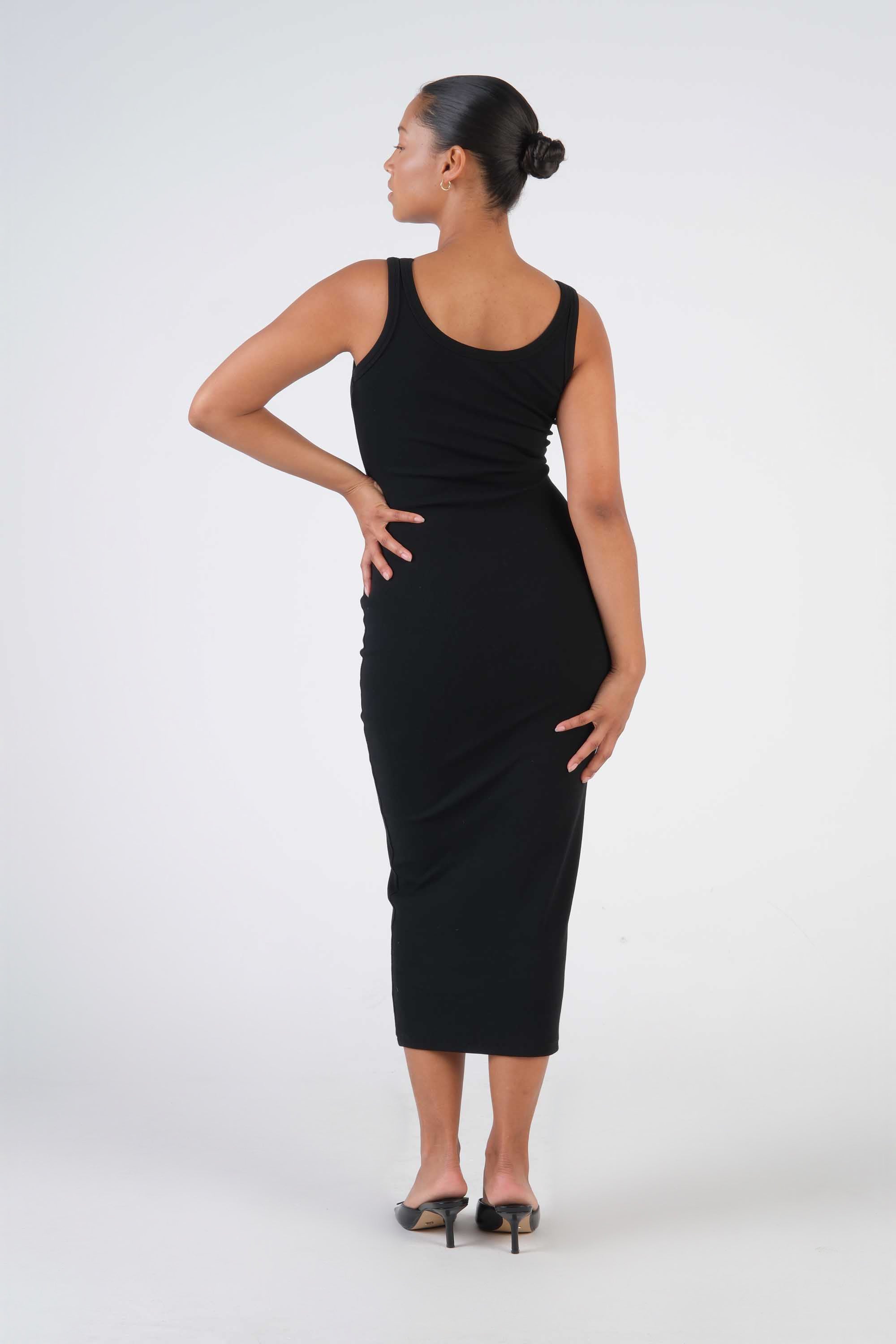 Refined Silhouette: Our Sleeveless Ribbed Dress is a study in elegance and comfort. The thick straps are designed for discretion, allowing you to conceal your bra with ease.