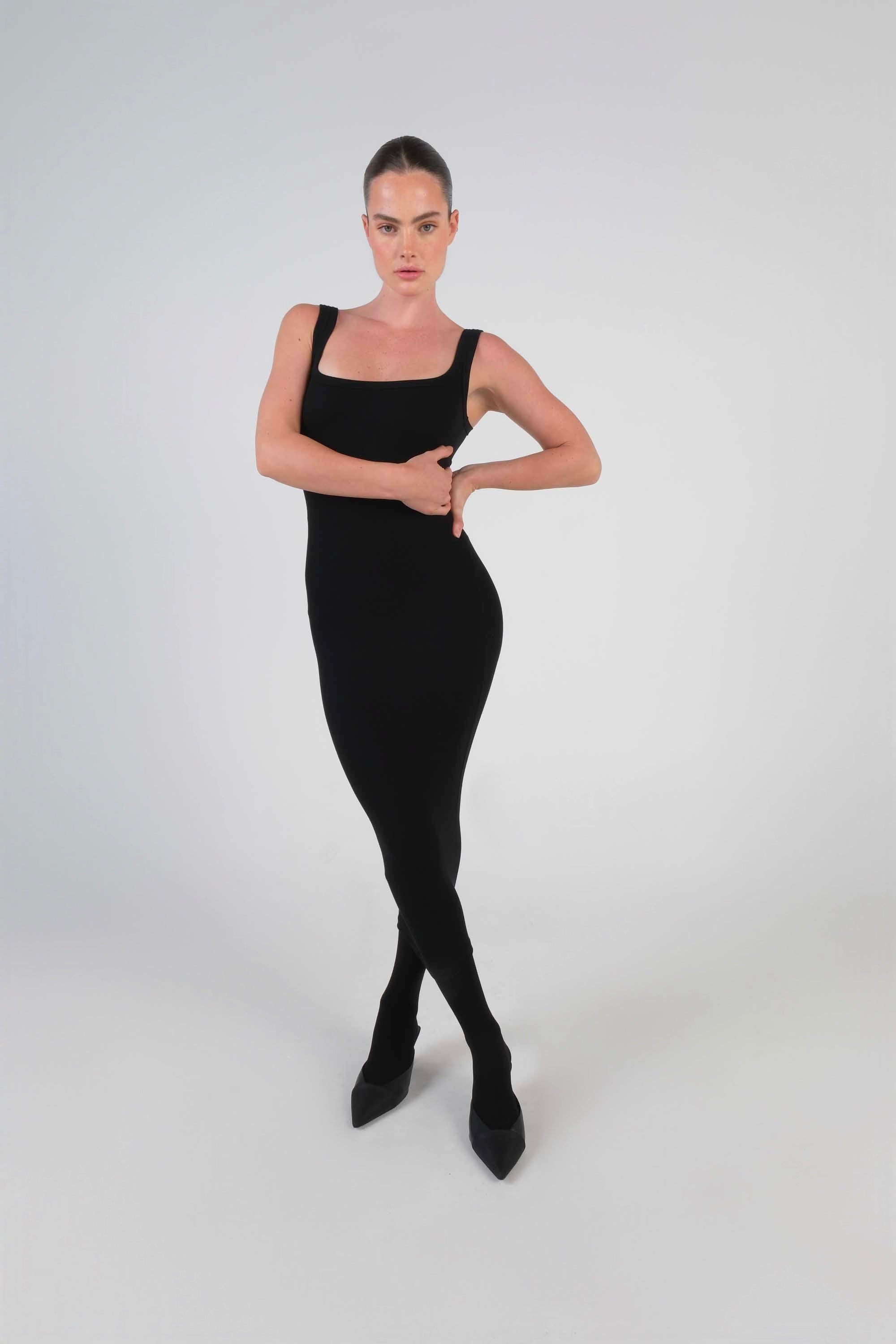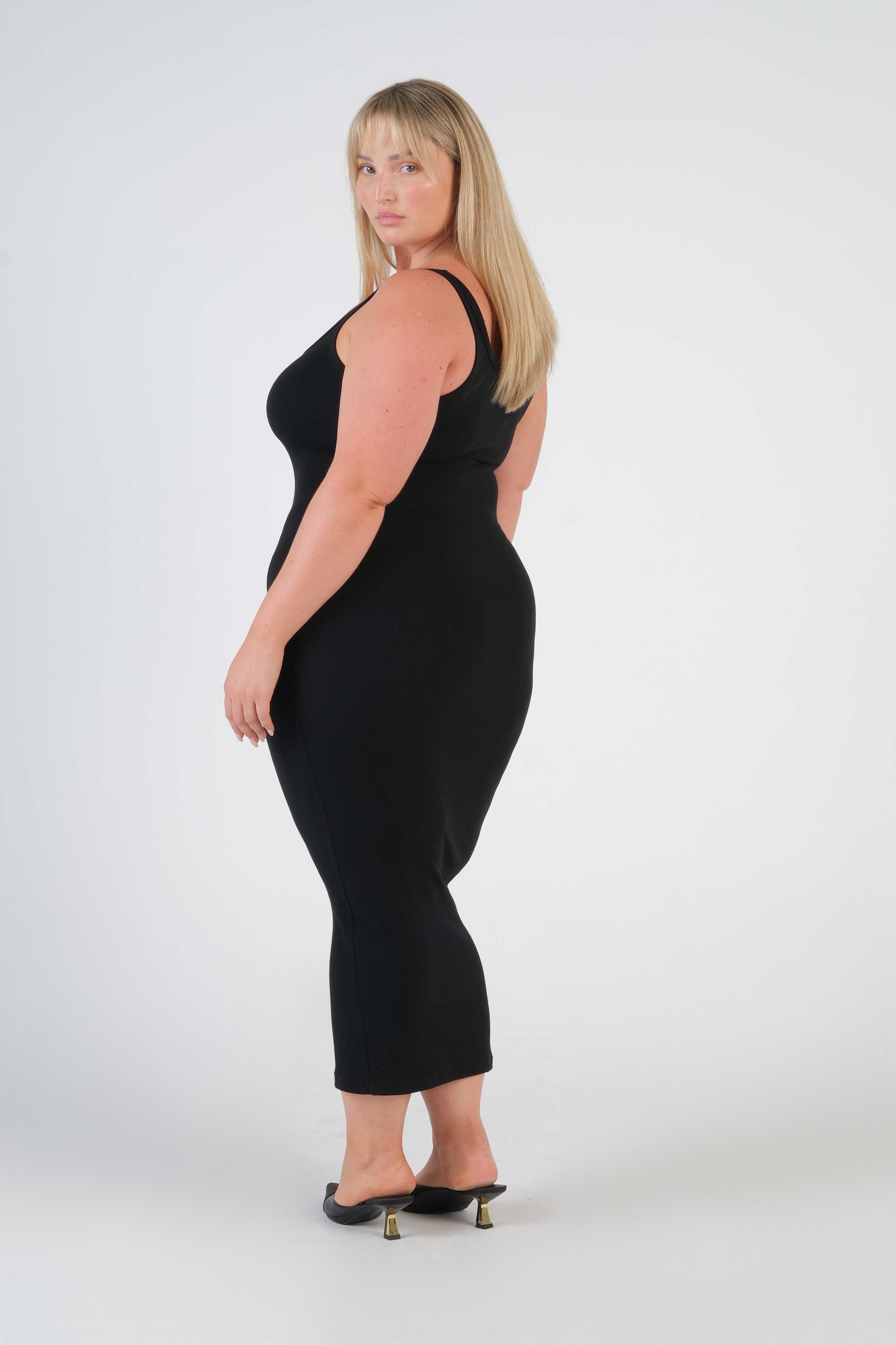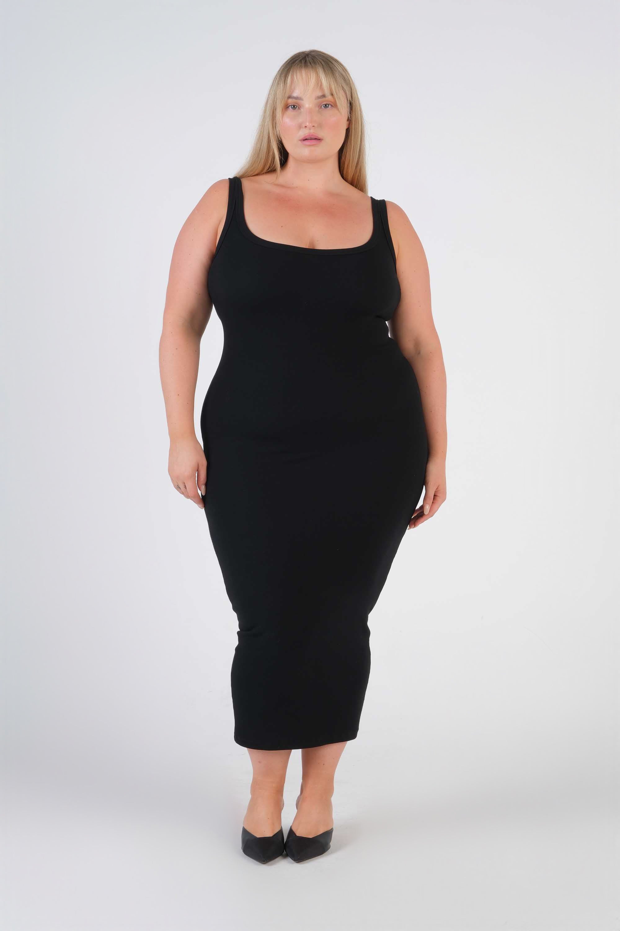 Refined Silhouette: Our Sleeveless Ribbed Dress is a study in elegance and comfort. The thick straps are designed for discretion, allowing you to conceal your bra with ease.