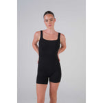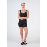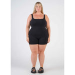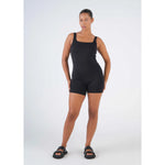 A modern essential, this sleeveless jumpsuit with bike short-length legs offers a flattering fit. Perfect for casual outings or upscale events, it pairs beautifully with our tees or an oversized shirt.