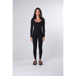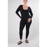 A timeless wardrobe staple, this comfortable and versatile jumpsuit is crafted for a flattering fit. Perfect for errands or formal events, it pairs seamlessly with tees or trench coats. If in between sizes, consider sizing up for added comfort.