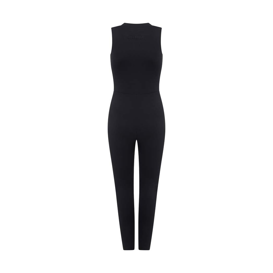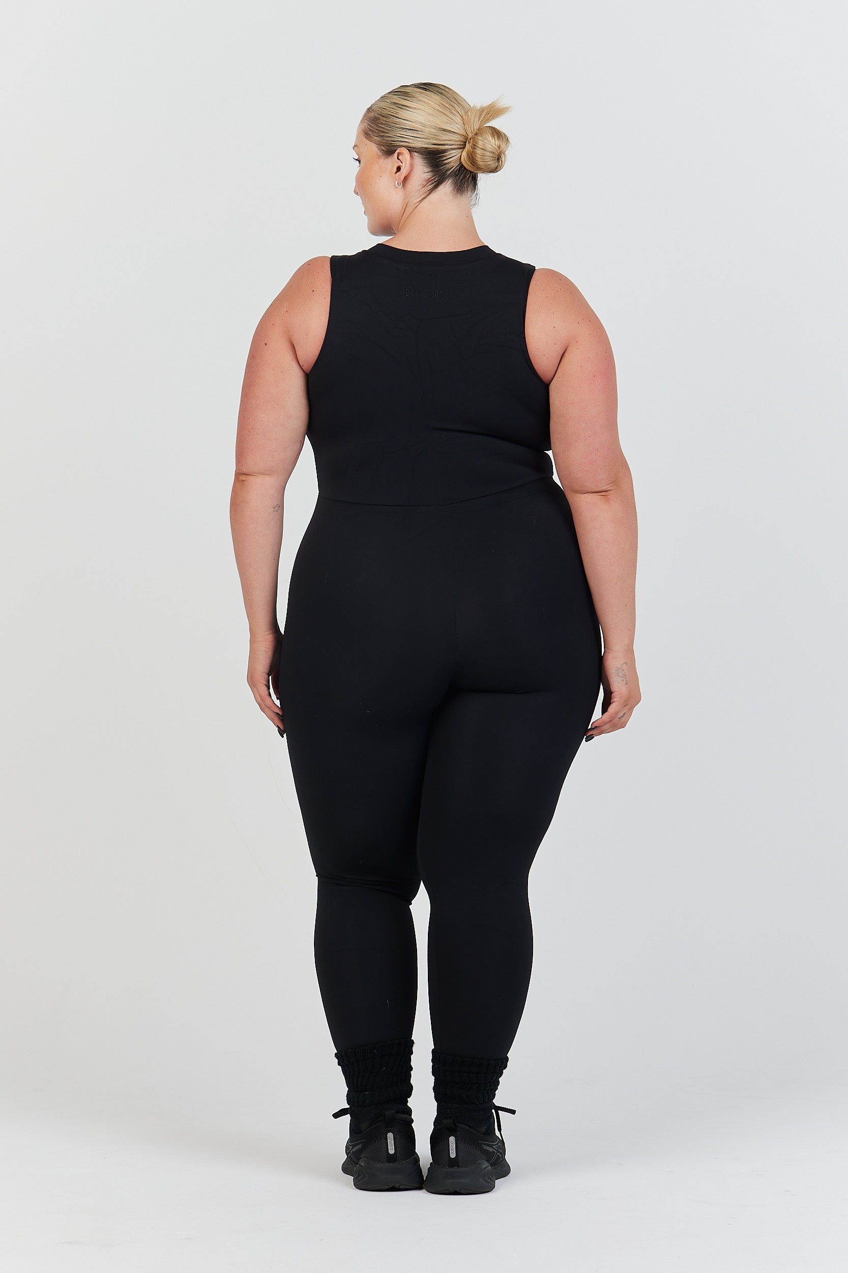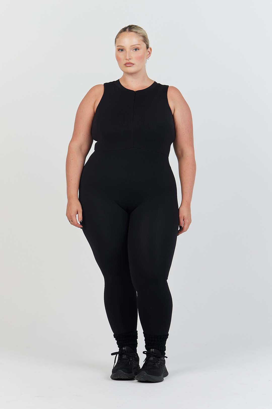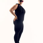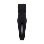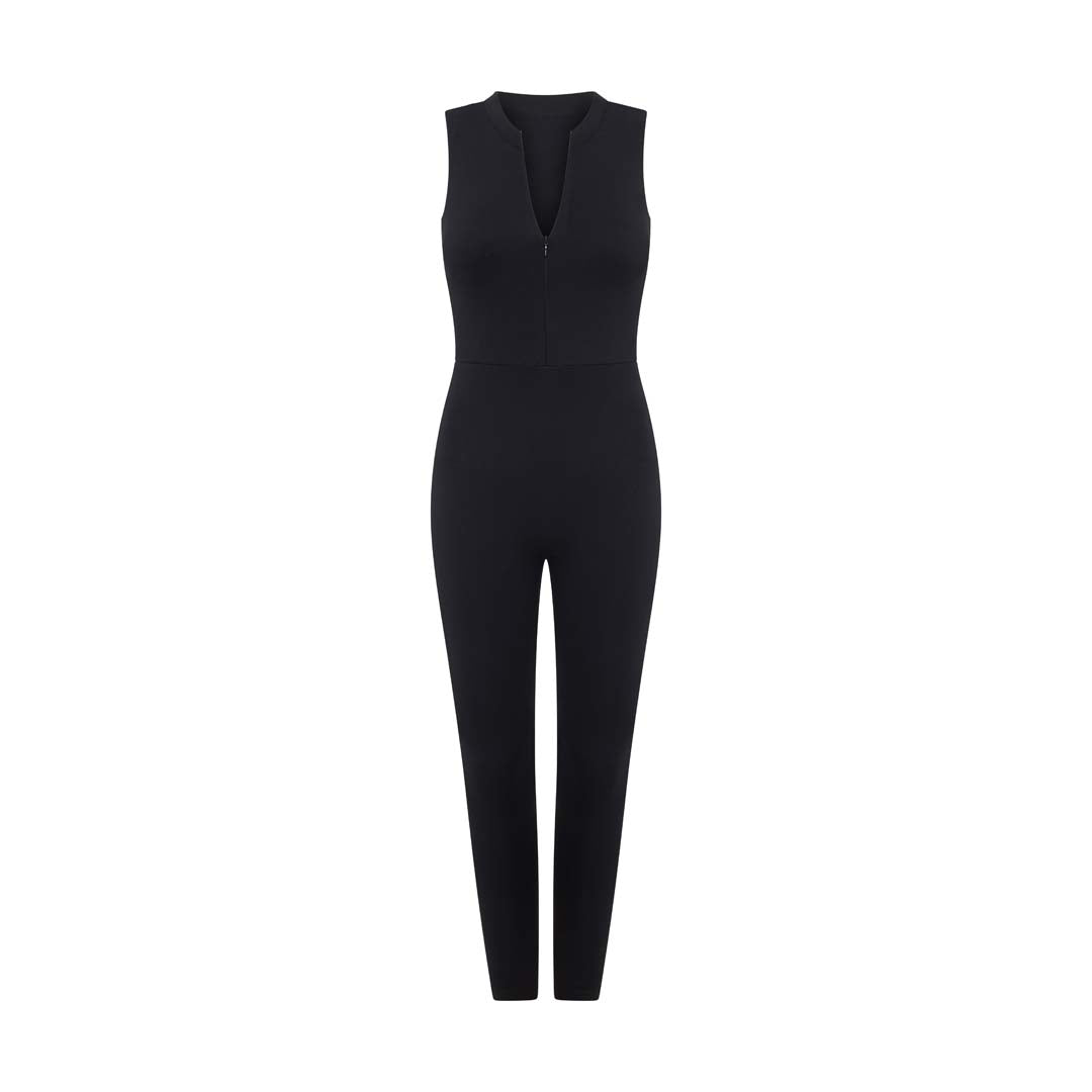The latest version of our sleeveless jumpsuit featuring a zipper detail.