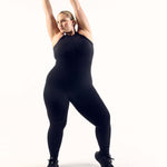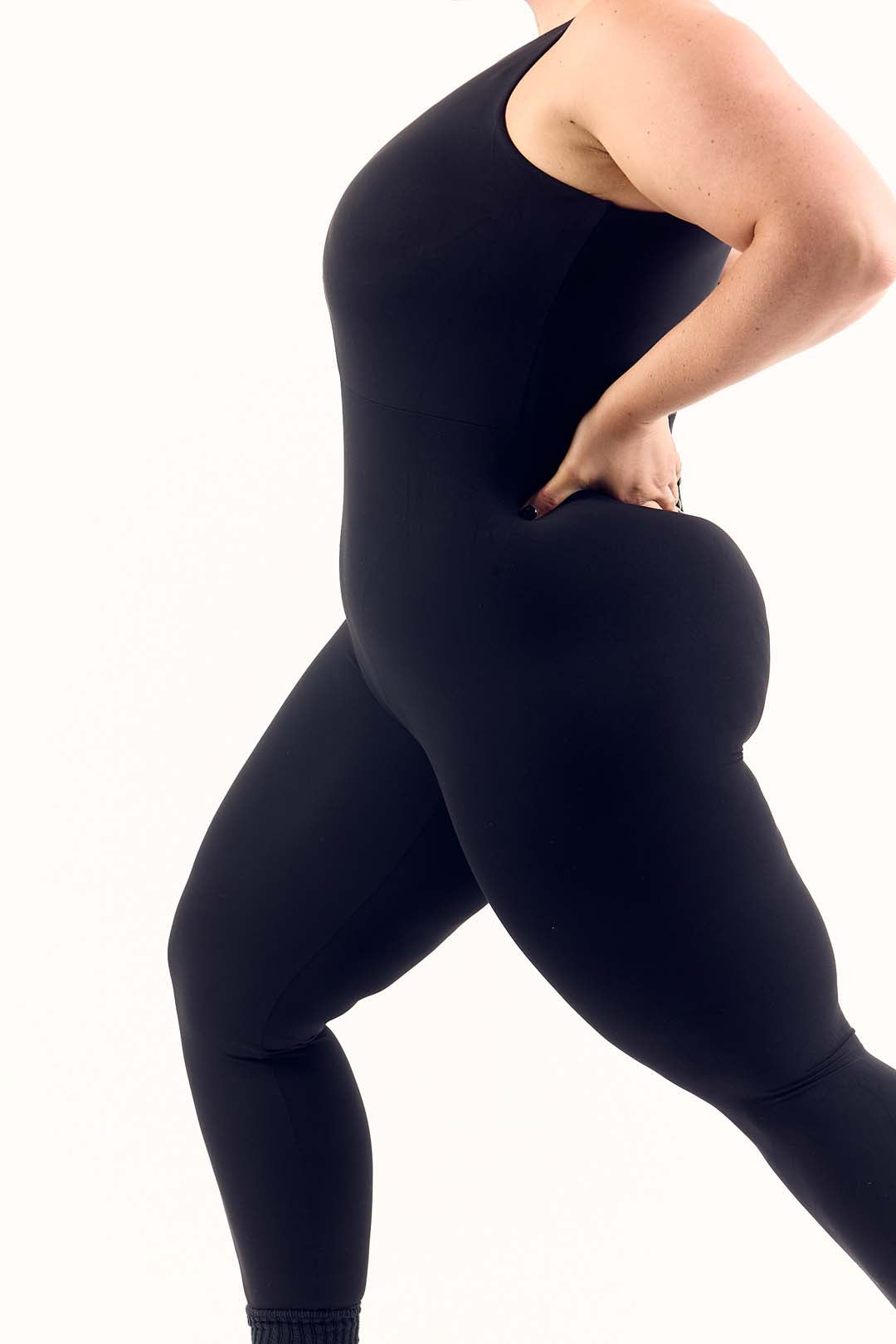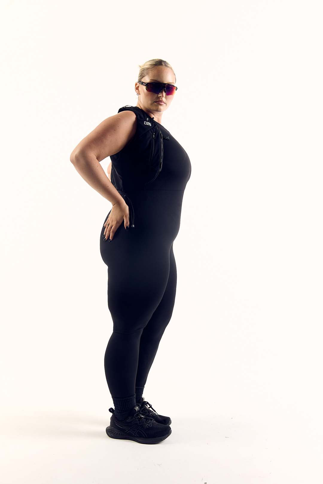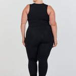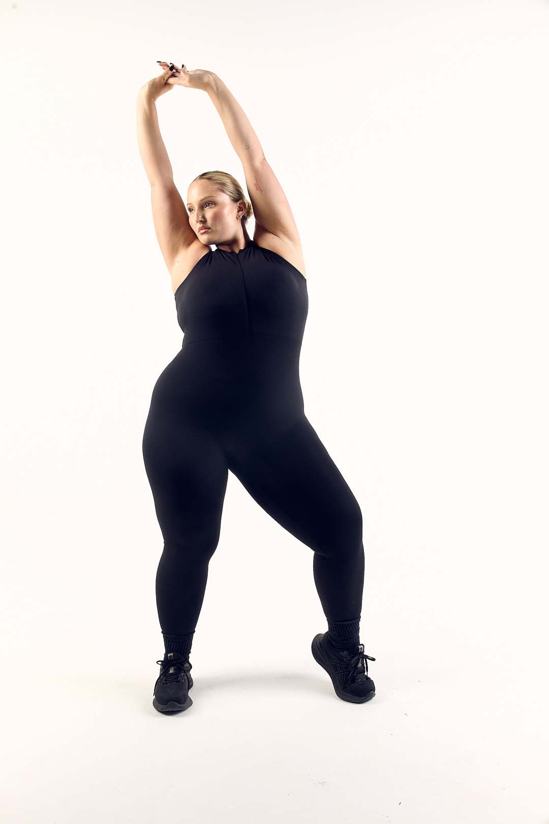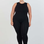 The latest version of our sleeveless jumpsuit featuring a zipper detail.