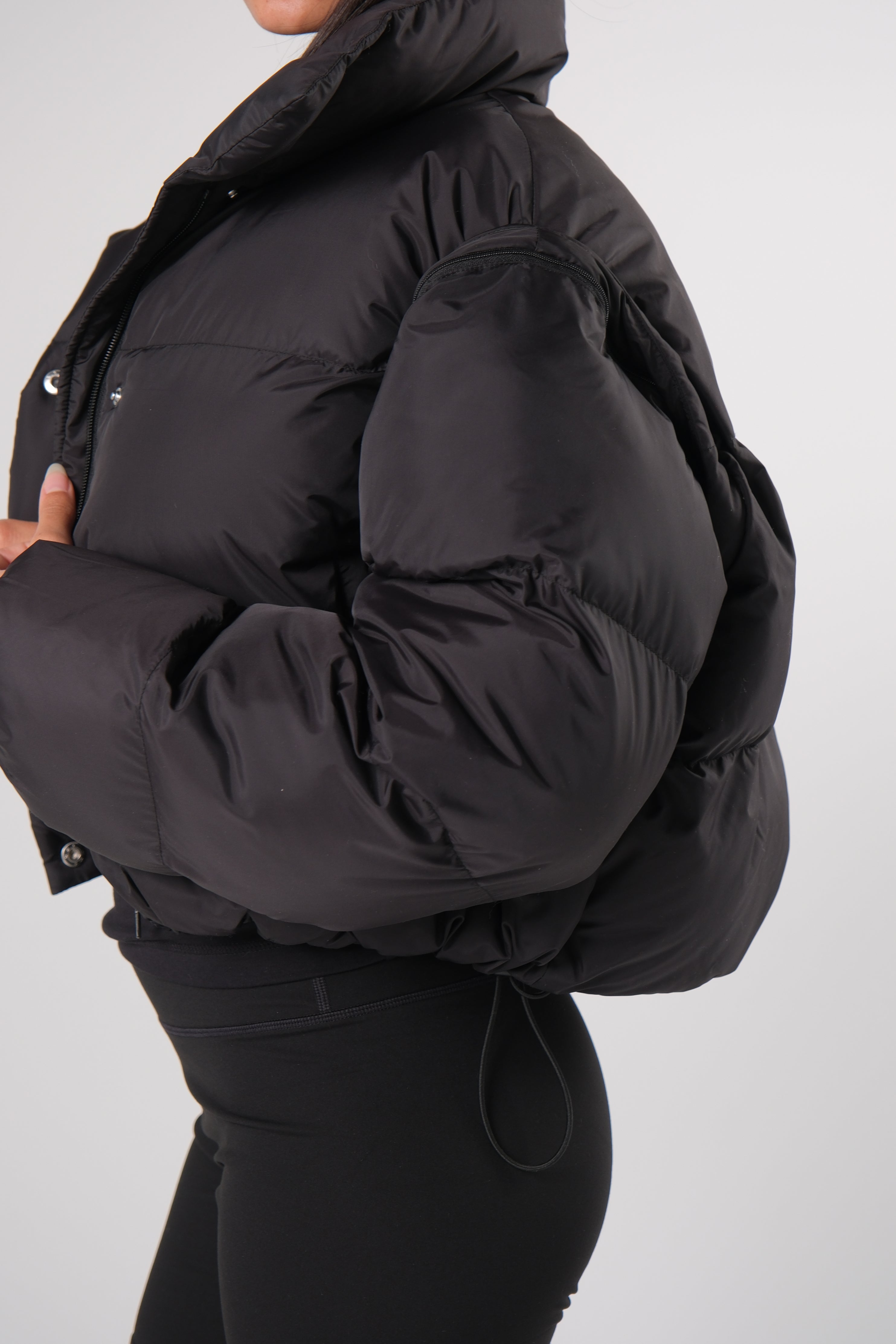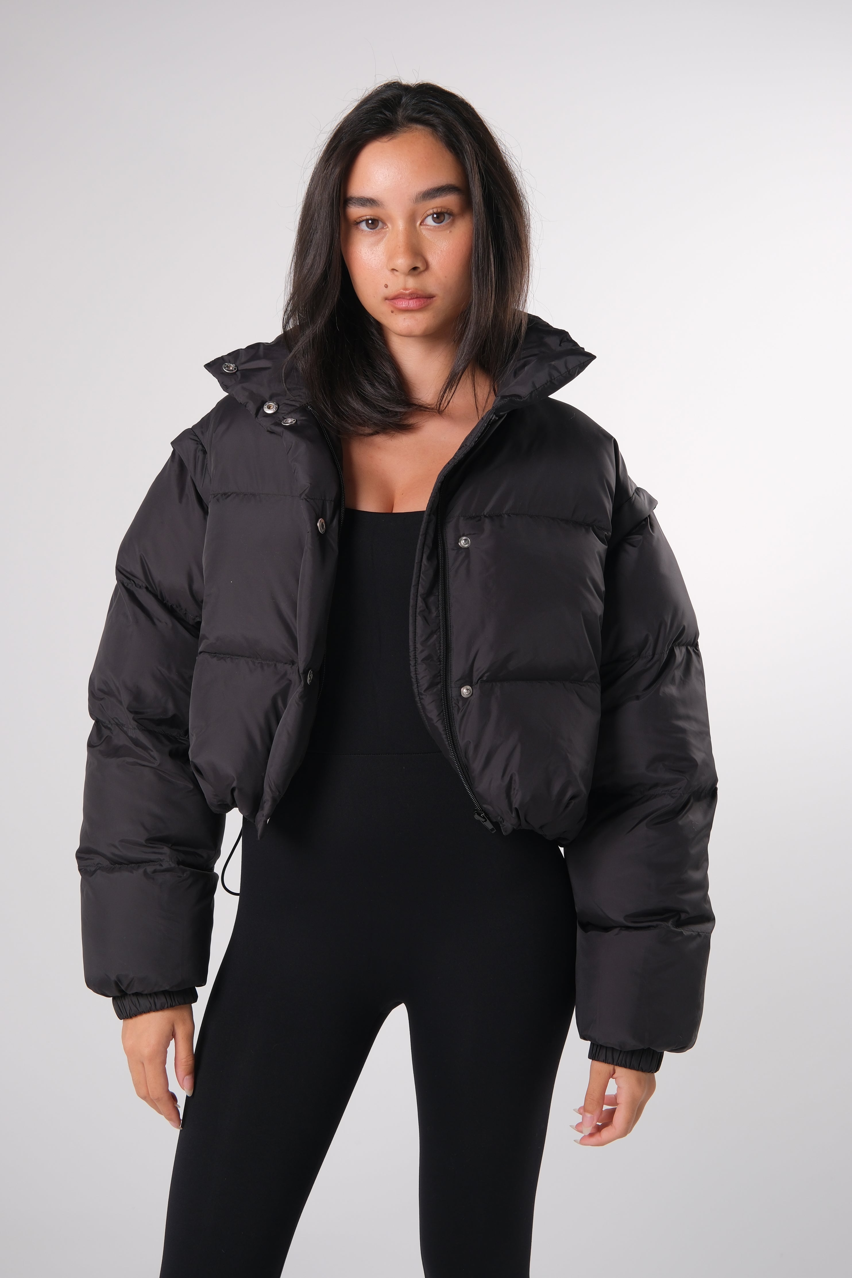 Introducing the Detachable Cropped Puffer, a versatile essential with a drawstring waist and detachable sleeves. Pair with our jumpsuits, tops, or bottoms for adaptable comfort and style.